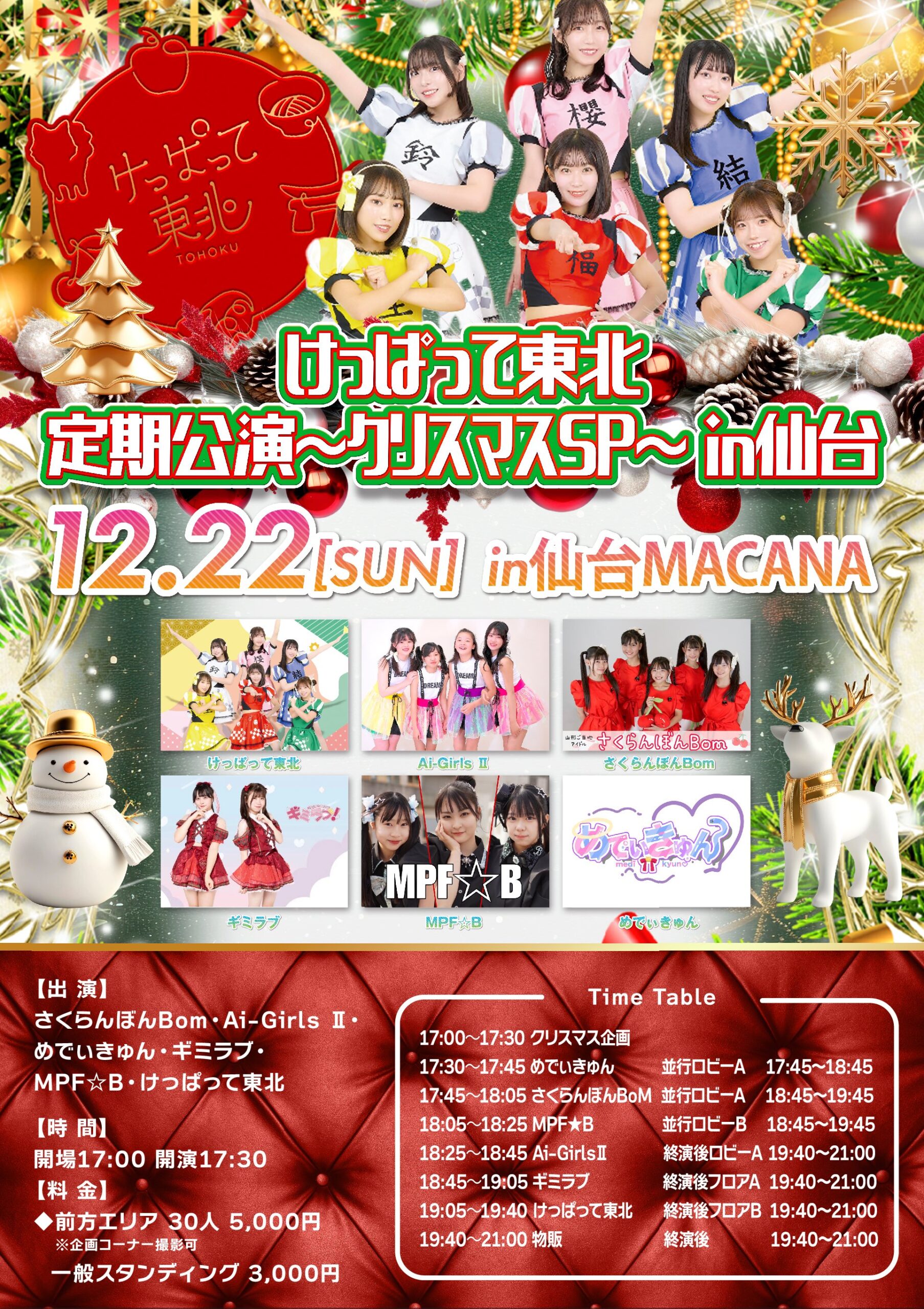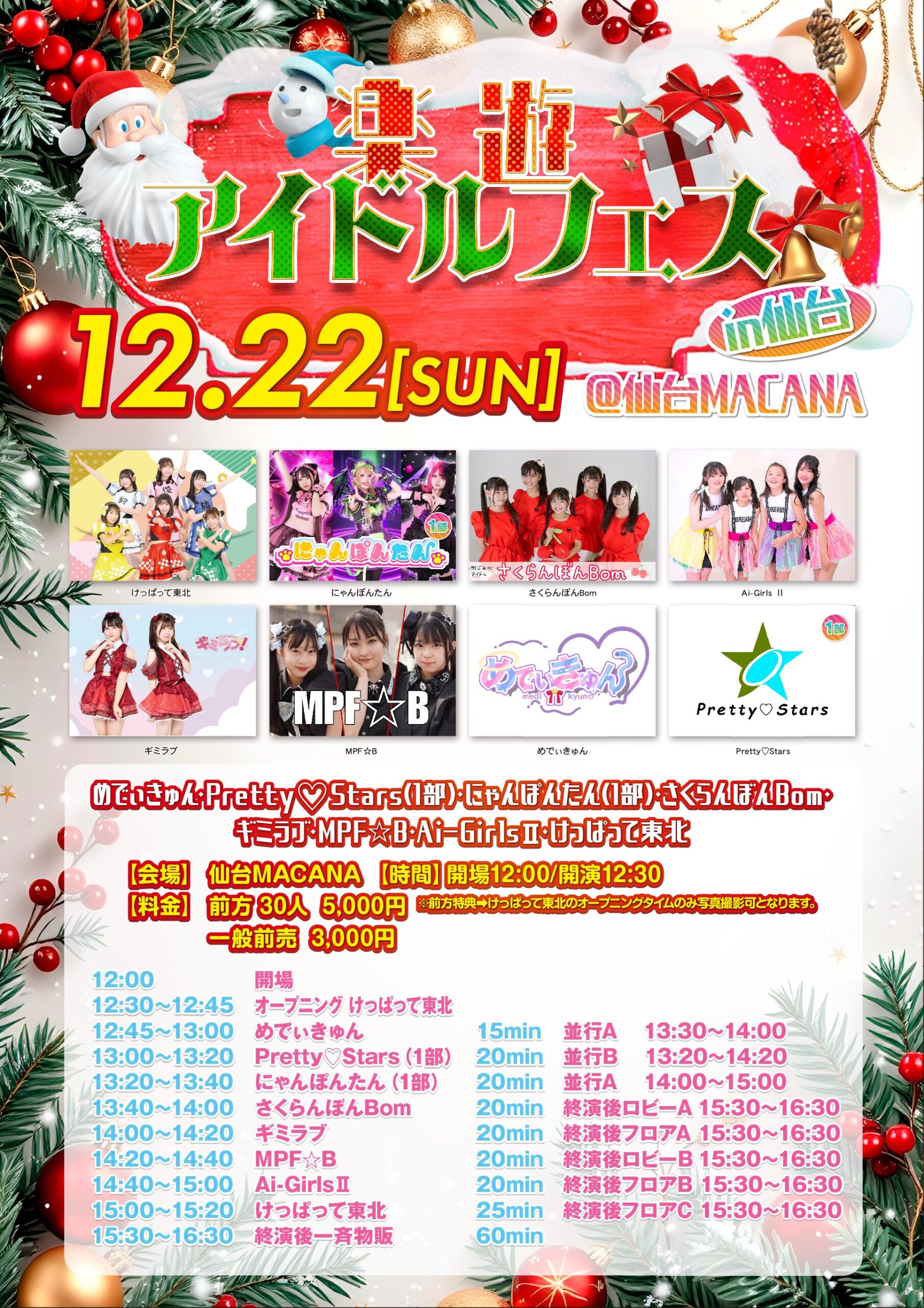 12/22 Sun 楽遊アイドルフェスin仙台 クリスマスSP ACT けっぱって東北 / めでいきゅん / Pretty♥Stars / にゃんぽんたん / さくらんぽんBom / ギミラブ / MPF☆B / Ai-Girls Ⅱ